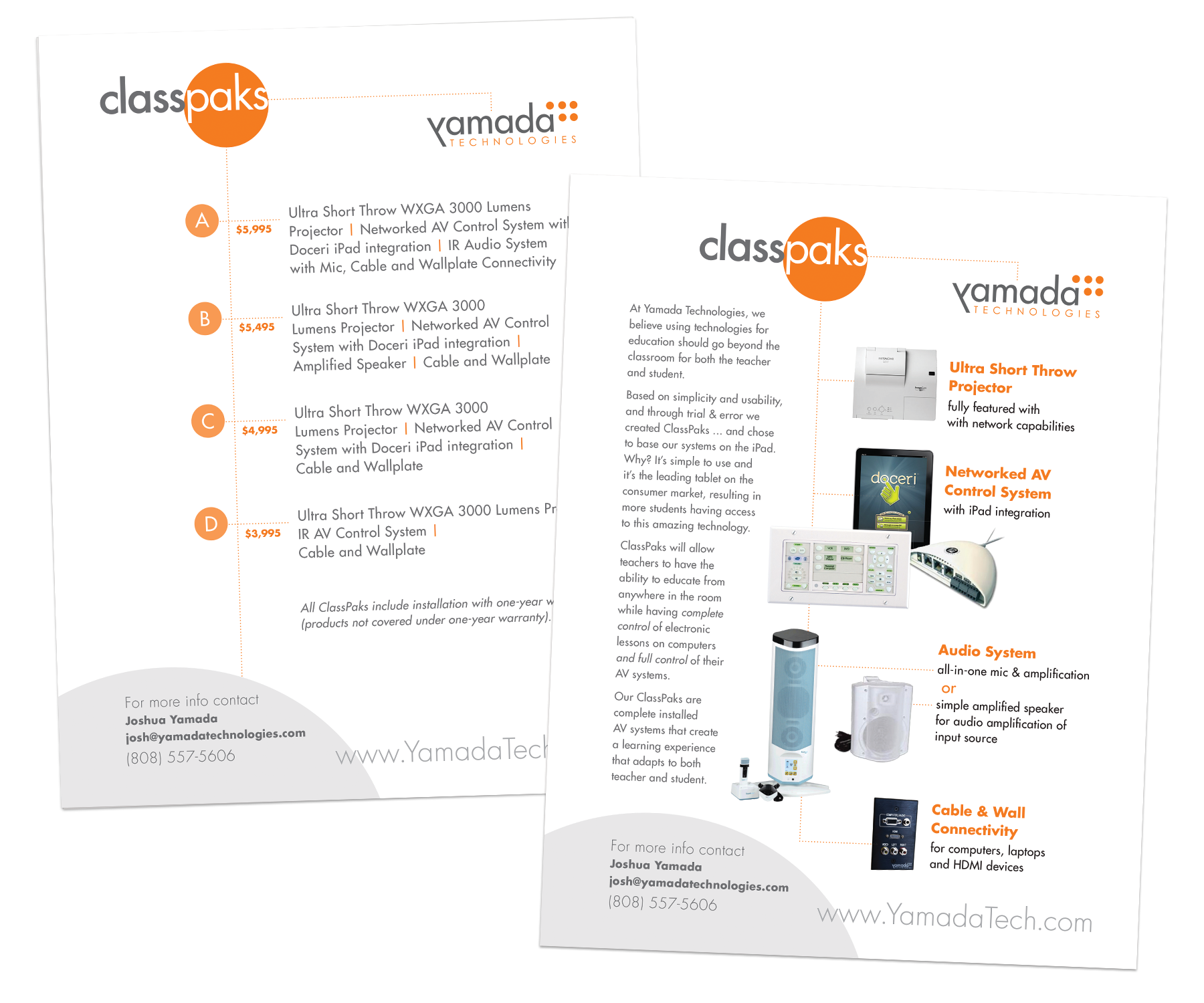 Information technology experts create solutions for educators, theaters and surveillance companies. Acme created solutions for Yamada by designing marketing collateral to help promote their services.